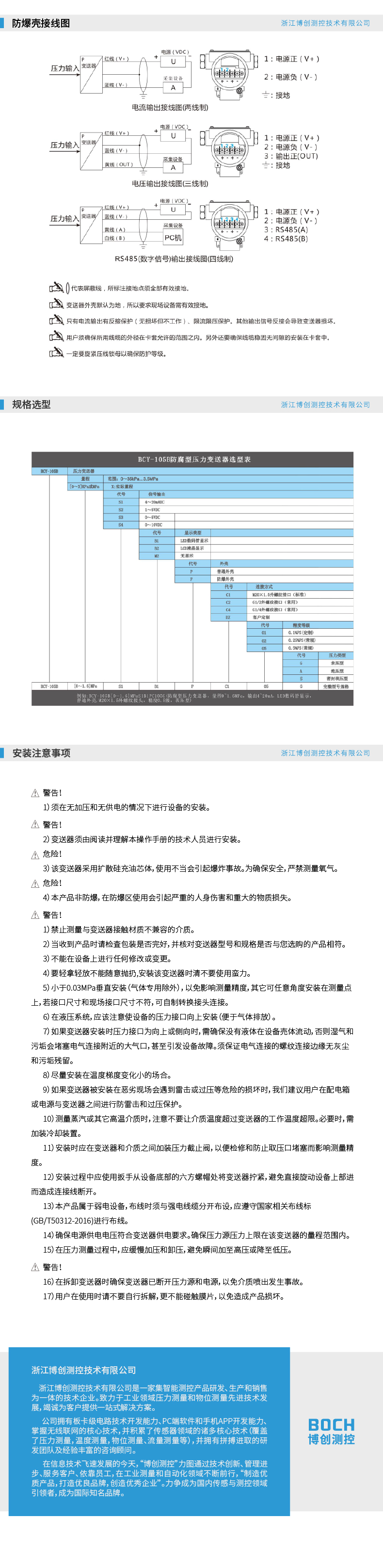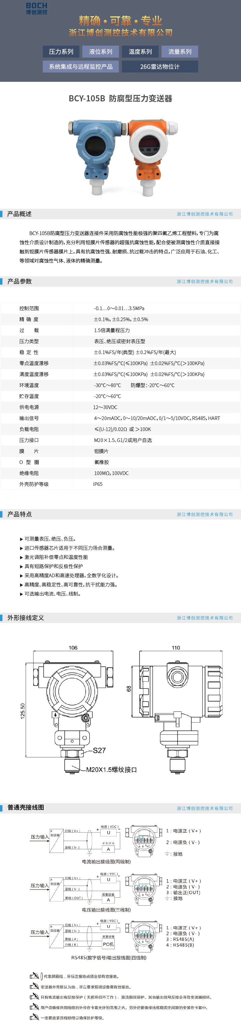 BOCH博创 BCY-105B防腐型压力变送器