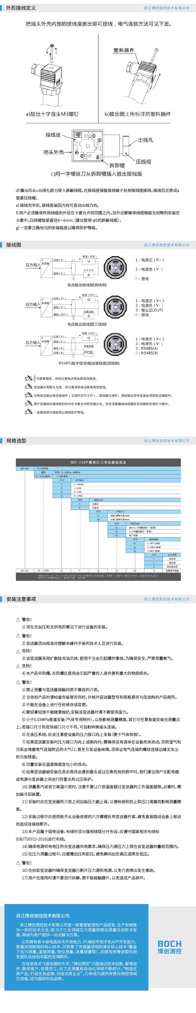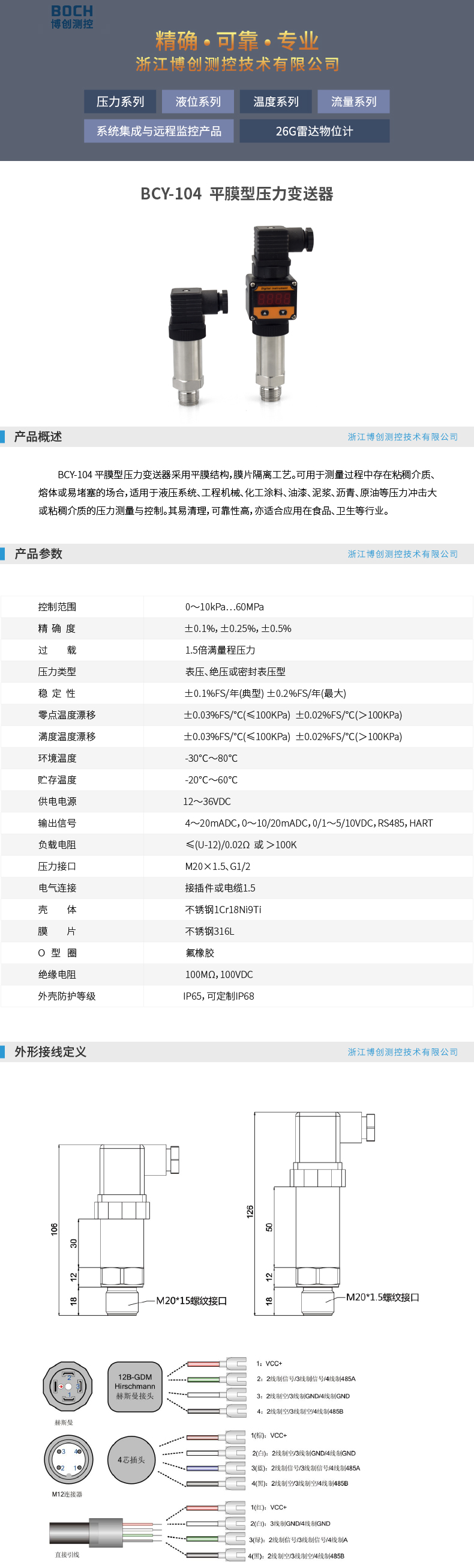 BOCH博创 BCY-104 平膜型压力变送器
