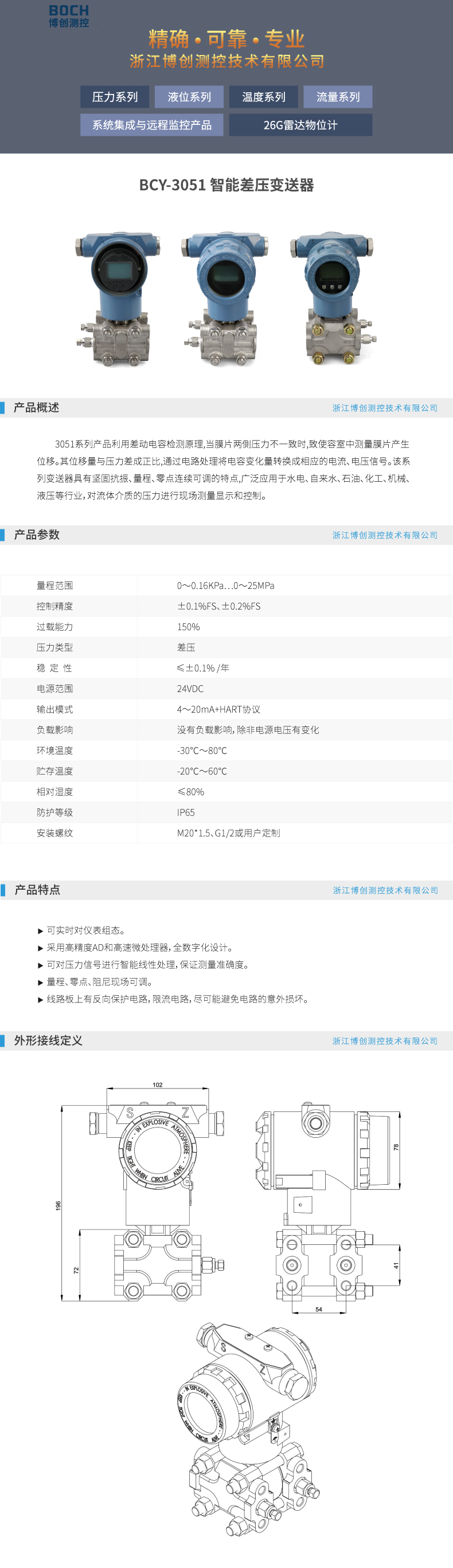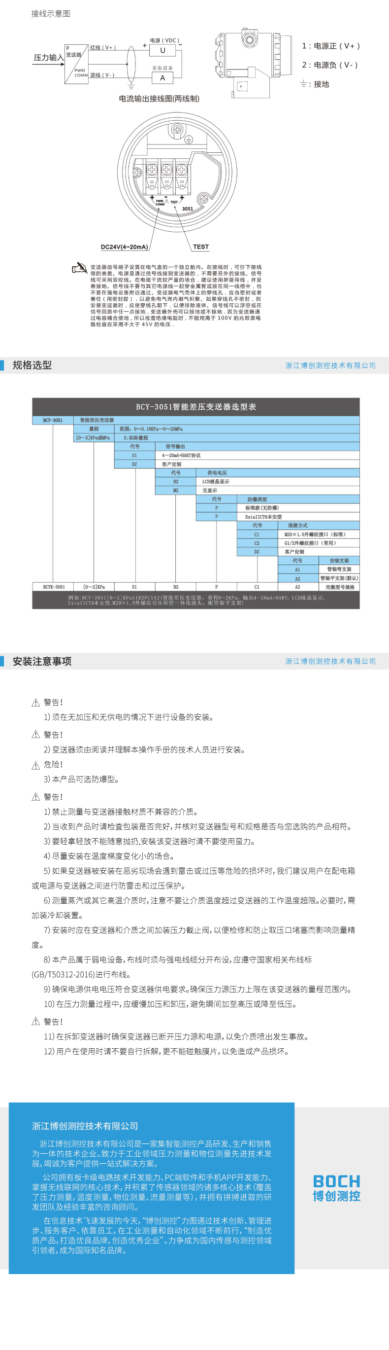 BOCH博创 BCY-3051 智能差压变送器