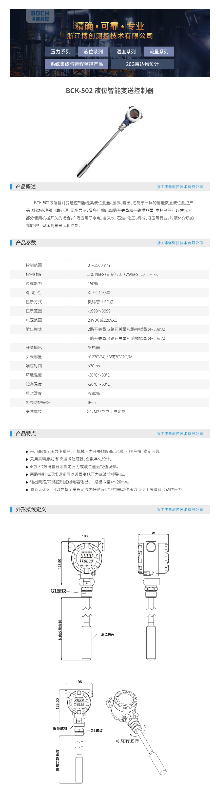 BOCH博创 BCK-502液位智能变送控制器