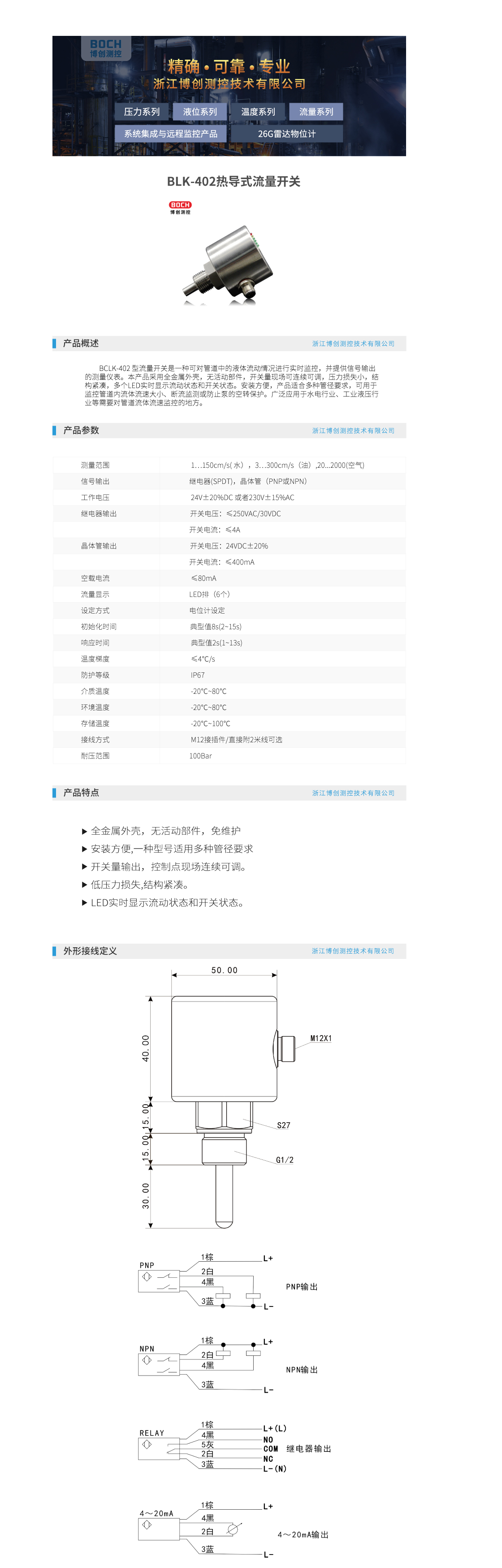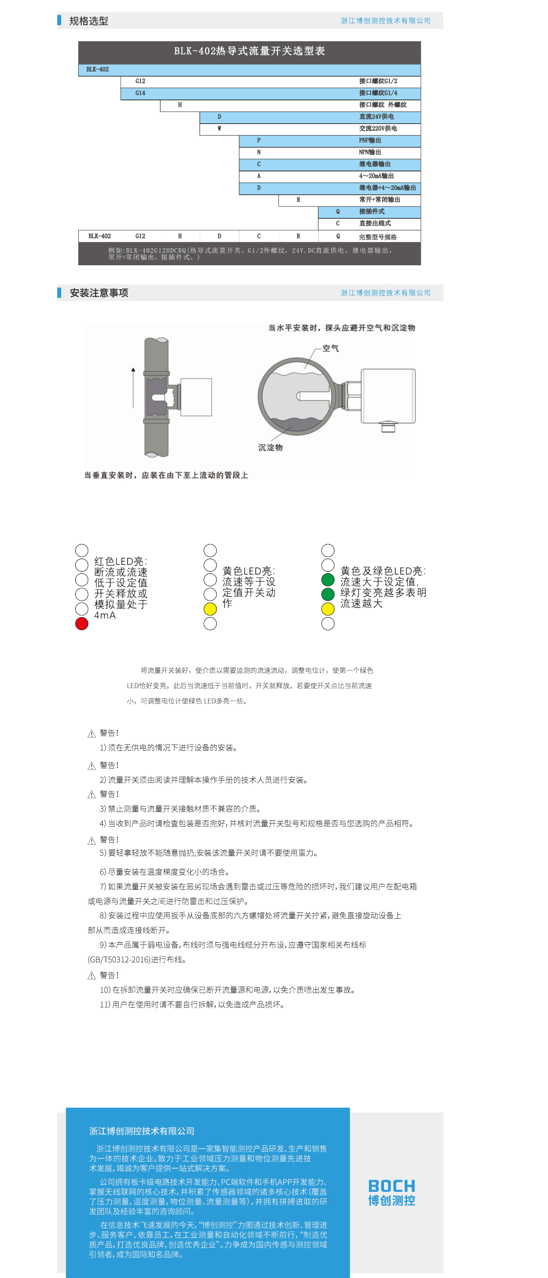 BOCH博创 BLK-402热导式流量开关 流量控制器 流量控制监测