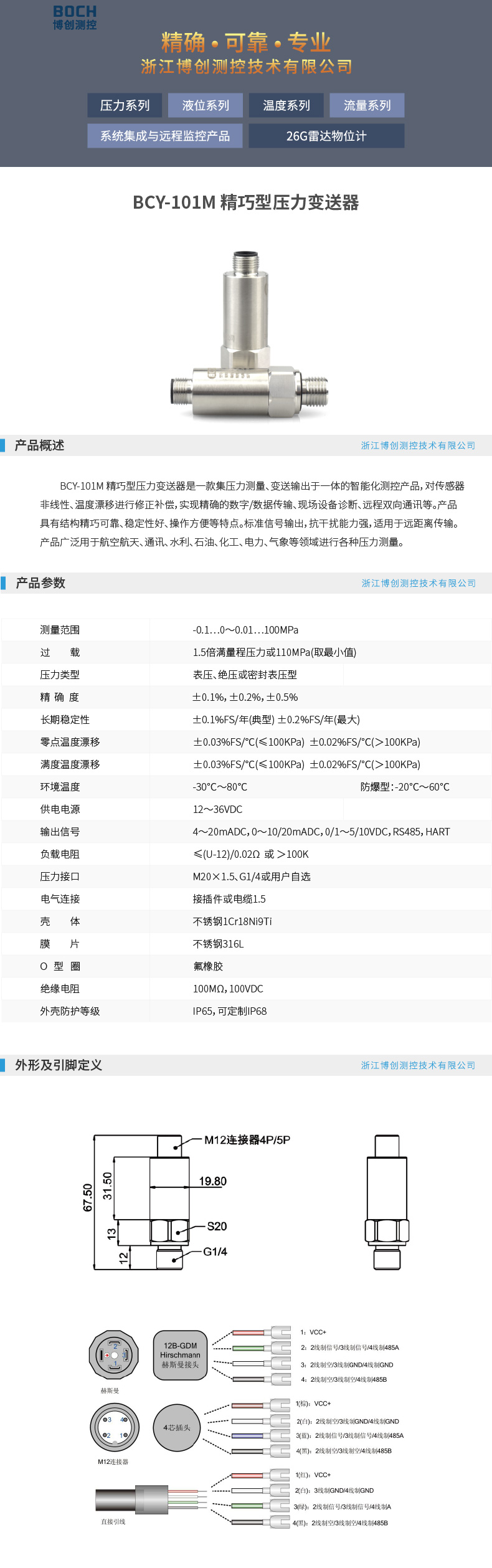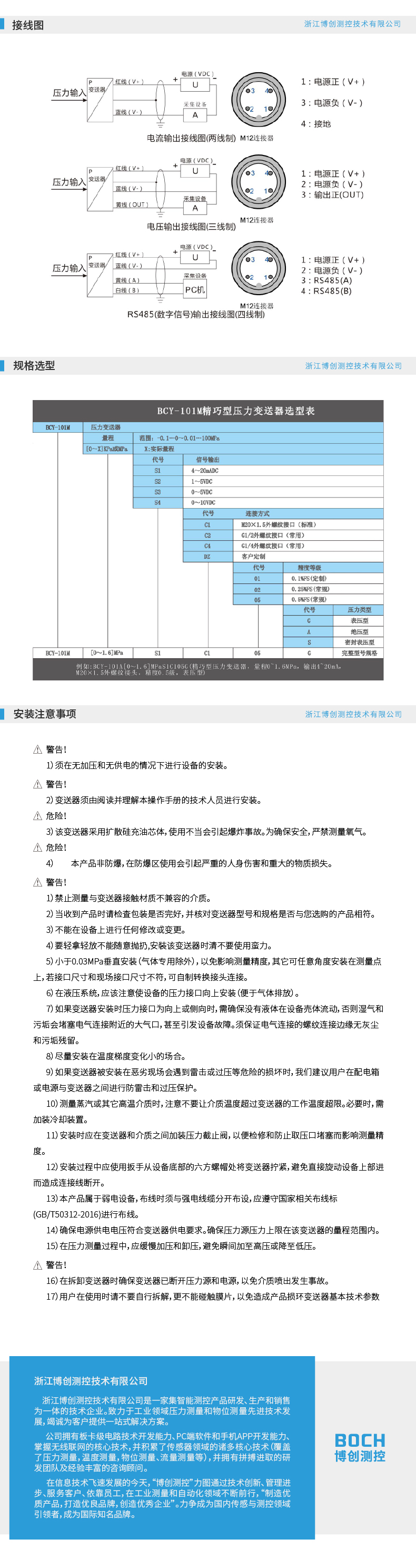 BOCH博创 BCY-101M 精巧型压力变送器