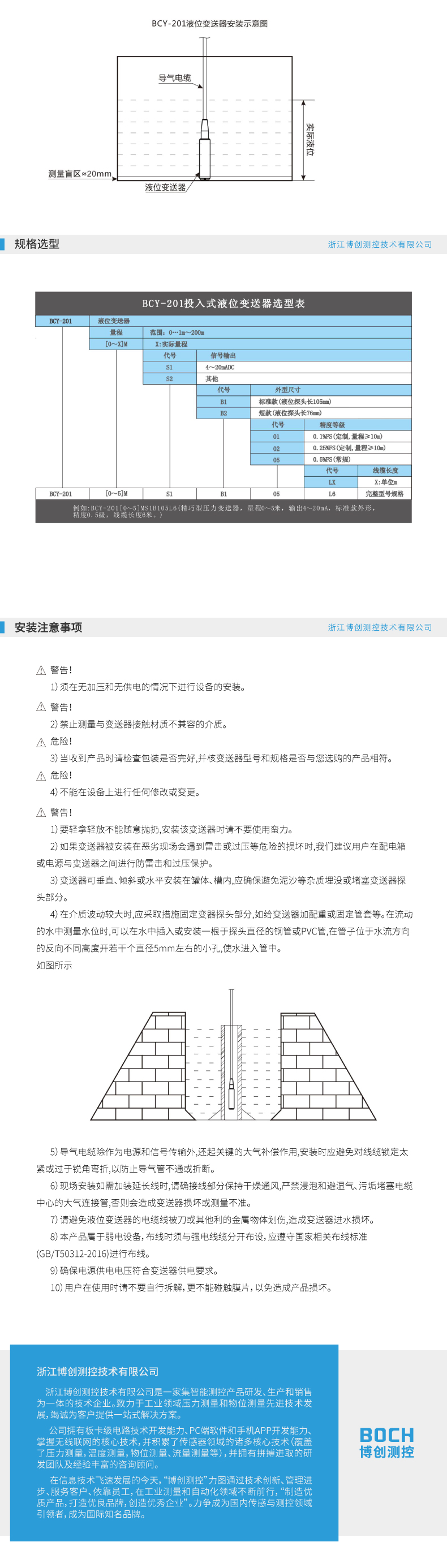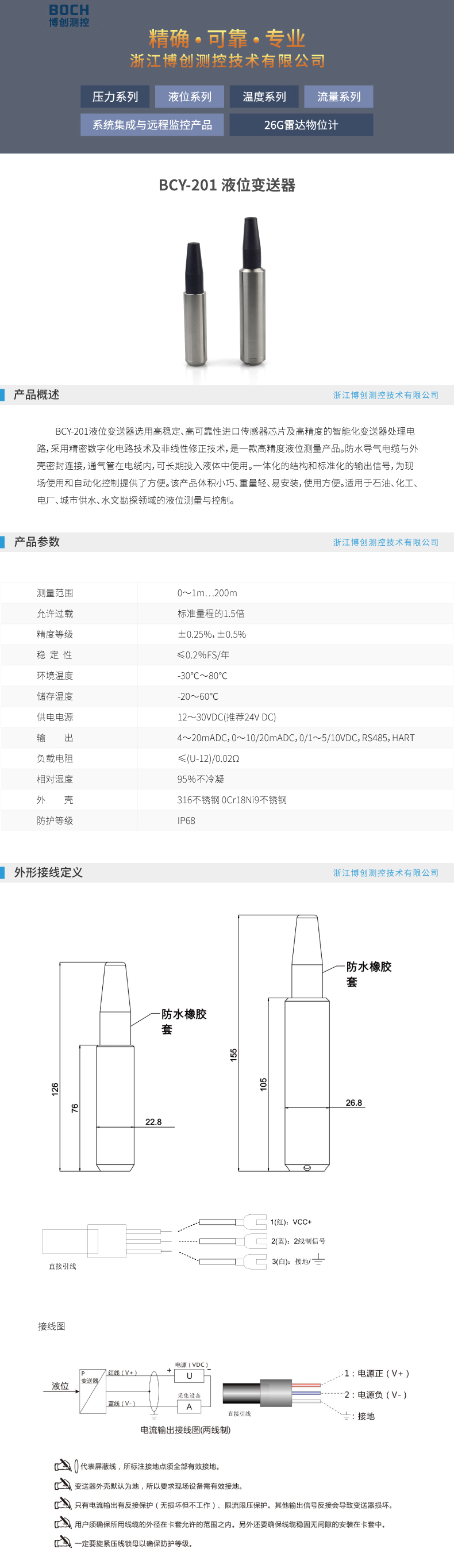 BOCH博创 BCY-201液位变送器